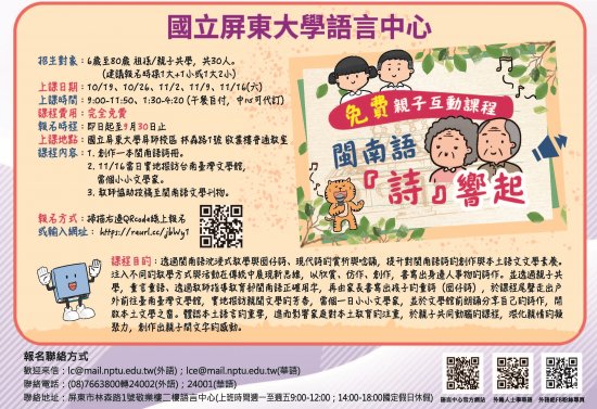 四、招生對象: 6 歲至 80 歲(祖孫/親子共學),共招收 30 名學員。