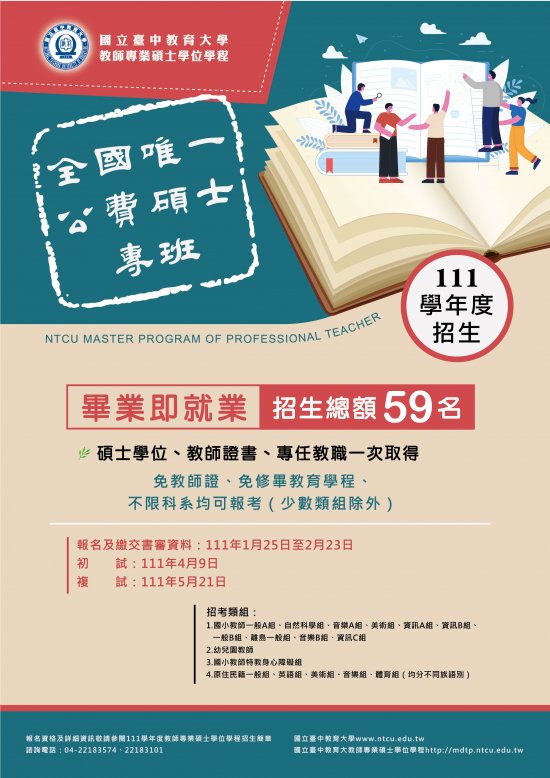 國立臺中教育大學專業碩士學位學程 111 學年度招生