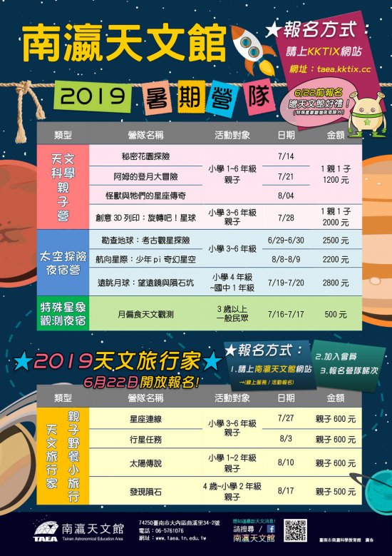 帶你飛天入地!2019 南瀛天文館暑期營隊5/21晚間 7 時起開放報名