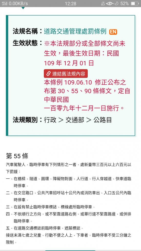 二、旨揭新修正道路交通管理處罰條例第 55 條-5  道路交通標誌前臨時停車,遮蔽標誌。