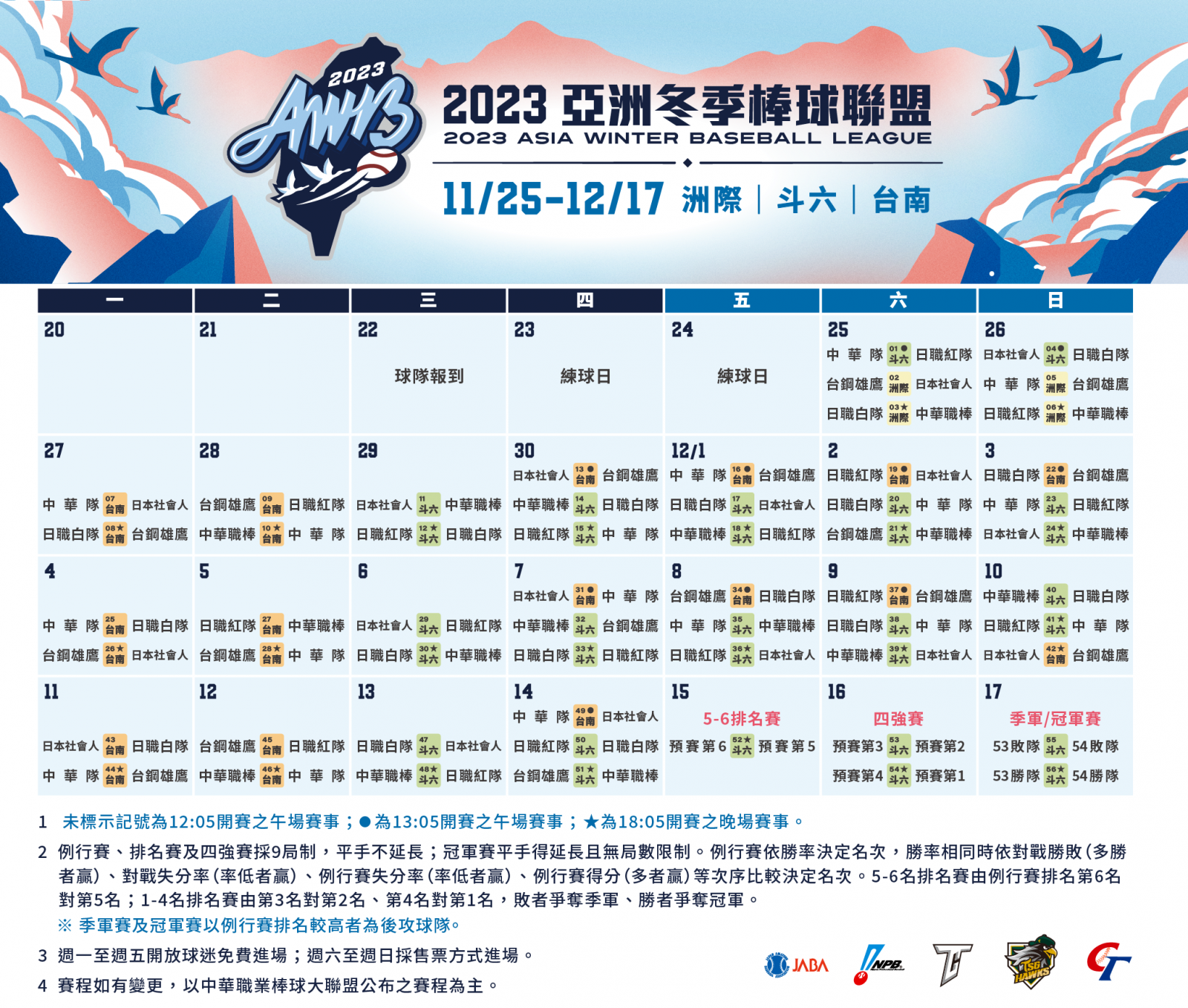 一、依據中華職業棒球大聯盟 112 年 11 月 22 日(112)中職棒聯蔡字第 1120000242 號函辦理。