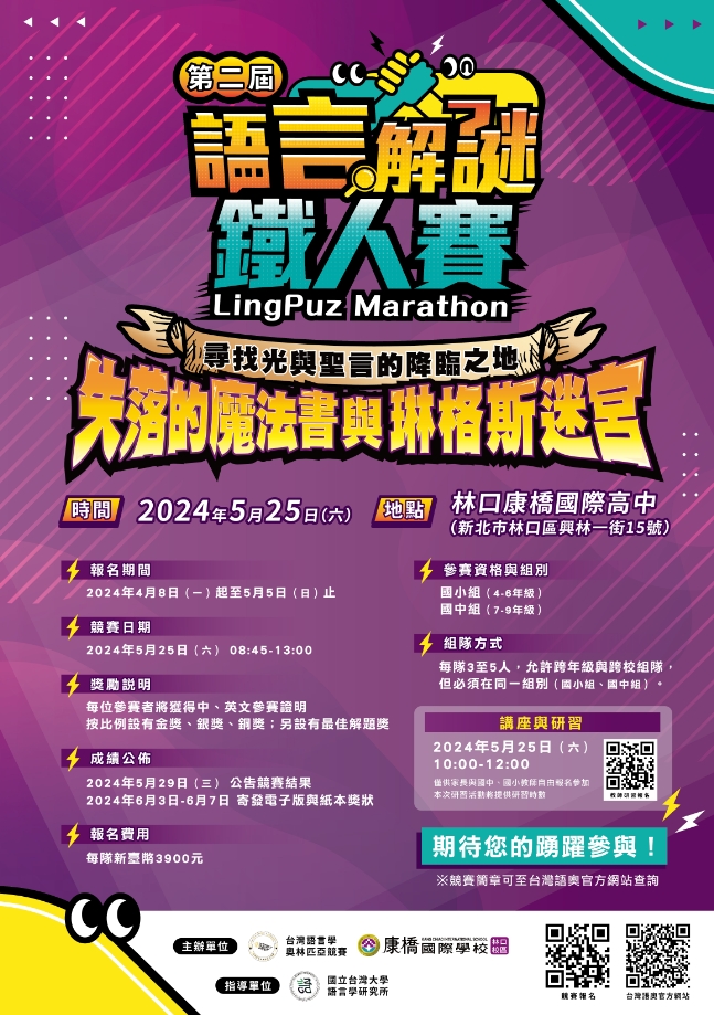 一、為開拓並激發青少年的語言邏輯分析能力,培養與挖掘青少年對語言學之認識、學習興趣與潛能,舉辦旨揭全國競賽。