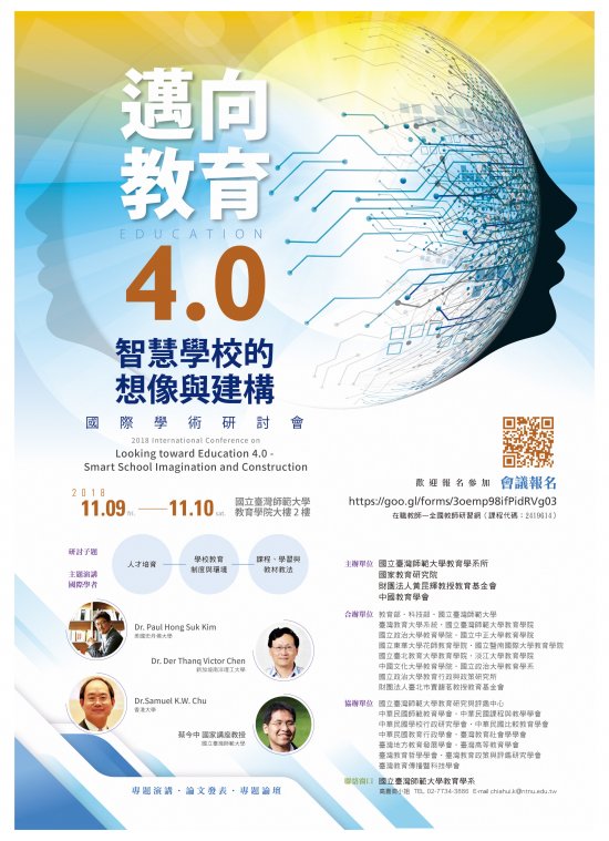 二、國立臺灣師範大學教育學系訂於 2018 年 11 月辦理「邁向教育 4.0-智慧學校的想像與建構」國際學術研討會。活動簡述如下: