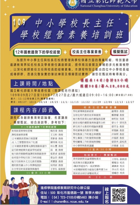 五、報名時間:即日起受理報名至 109 年 9 月 20 日(星期日)止。