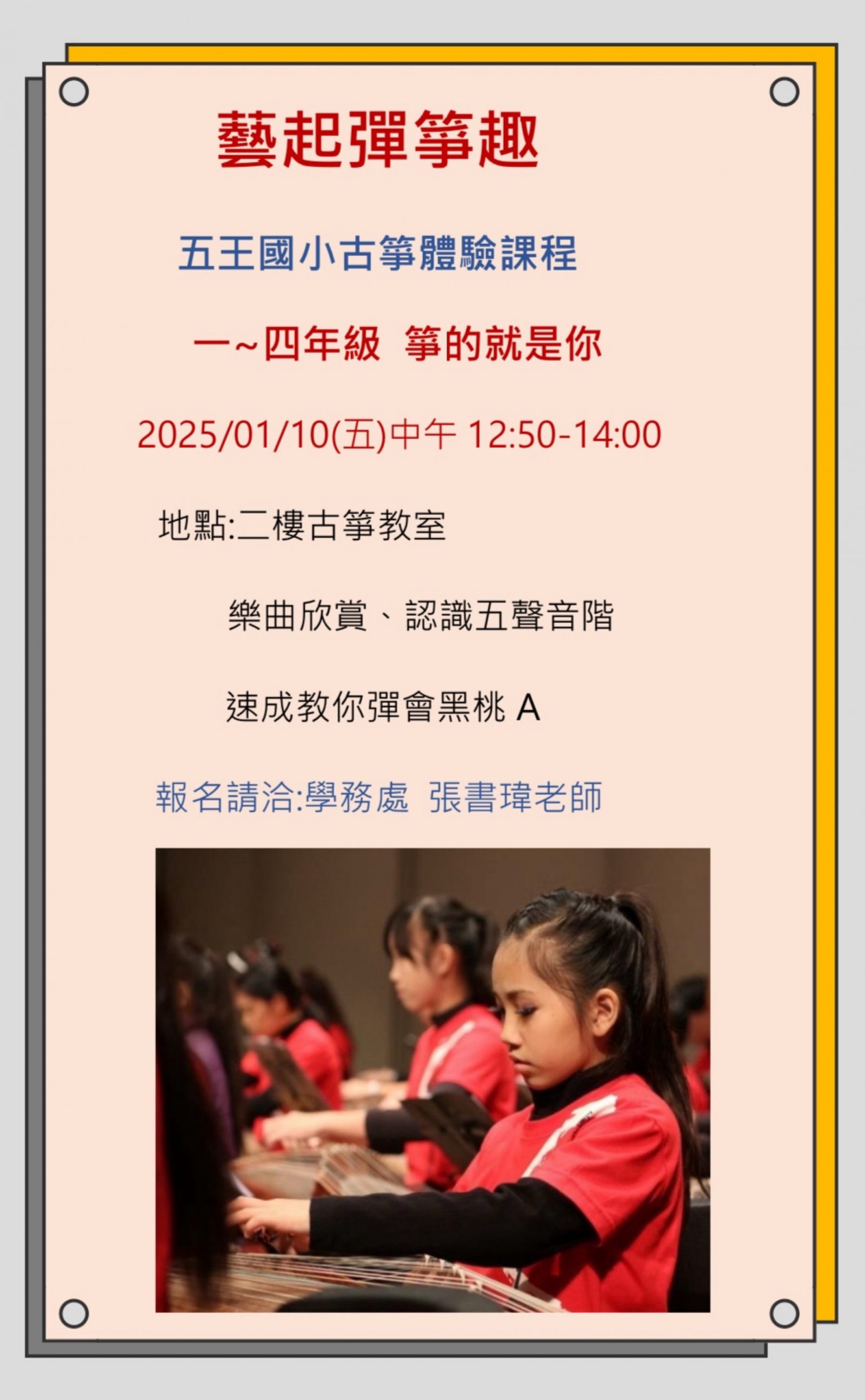 二、 地點: 2 期 2 樓古箏教室 (免費)。