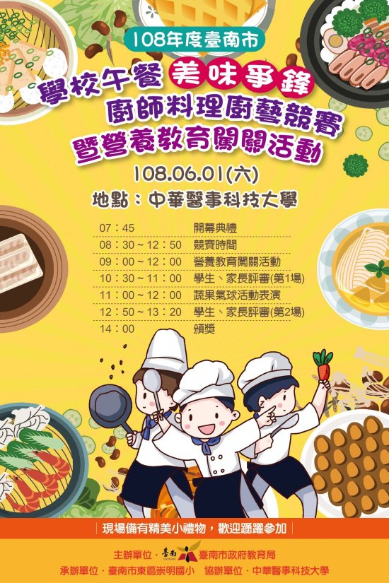 鼓勵各校師生及家長共同參與,當日到現場者,除了可享受各校廚師精心製作的美味佳餚外,也可票選出自己心目中的理想校園午餐。當日亦有蔬果氣球活動表演及營養教育闖關活動等,並備有精美小禮物。