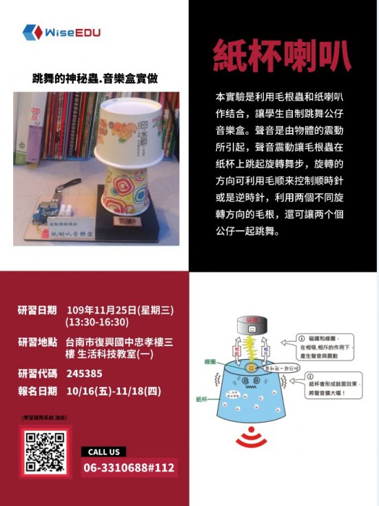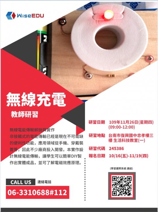 研習地點:臺南市復興國中忠孝樓三樓生活科技教室(一)。