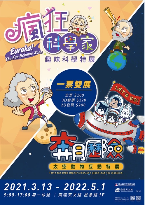 一、「瘋狂科學家-趣味科學特展」及「太空動物奔月歷險互動特展」聯合展覽資訊: