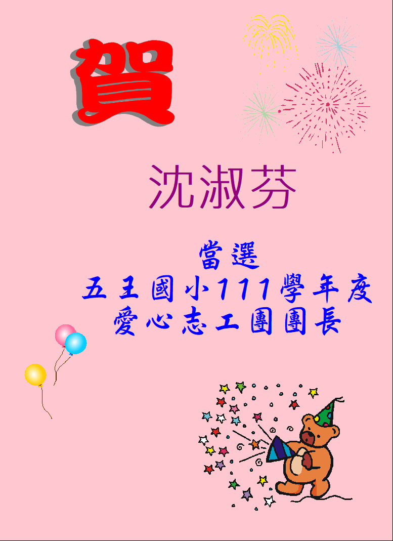 恭喜 沈淑芬女士當選111學年度愛心志工團團長
