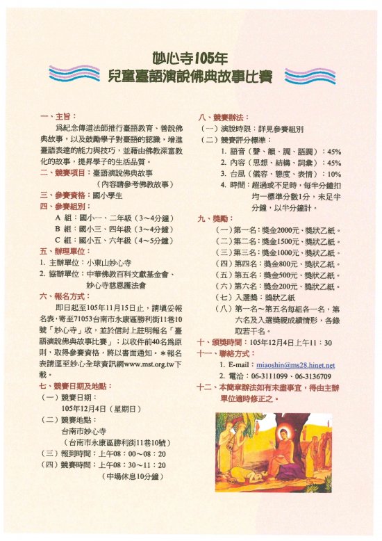 競賽項目:臺語演說佛典故事