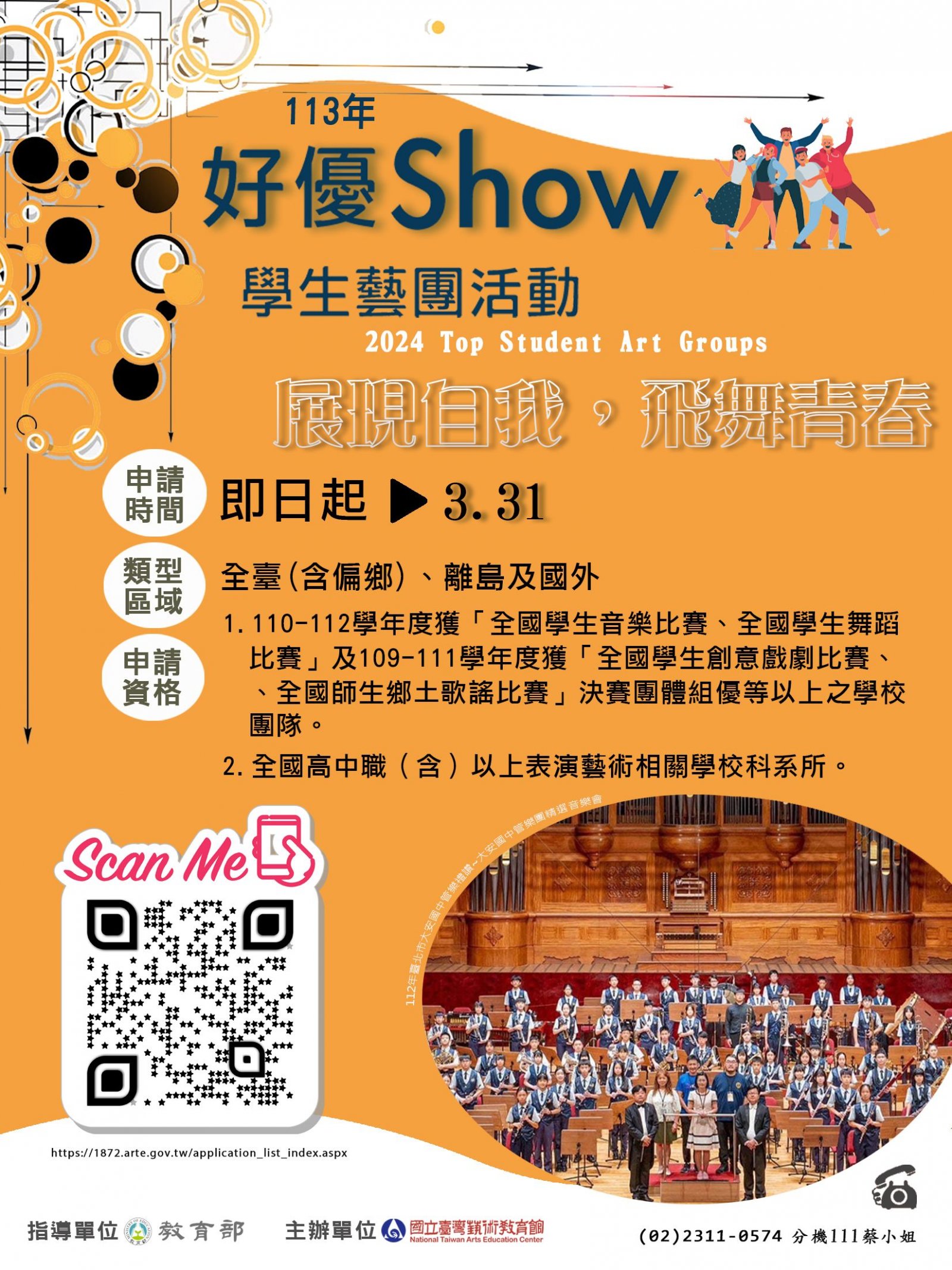一、依據國立臺灣藝術教育館 112 年 12 月 28 日藝演字第 1120004105 號函辦理。