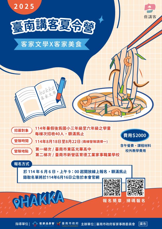 (三)招募對象: 114 年暑假後為國小三年級至六年級之學童,每梯次招收 40 人,並保留 4 名低收/中低收入戶學生免報名費。