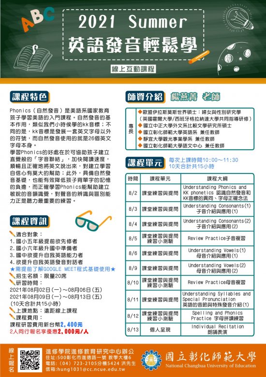 轉知彰師大進修學院推廣教育課程招生簡章共4門課程。