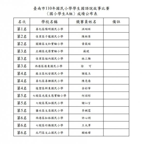 狂賀!臺南市 110 年國民小學學生 【國語說故事比賽】〈國小學生 A 組〉三甲洪翊玹『第一名』!!
