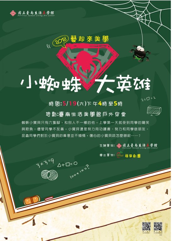 二、「小蜘蛛大英雄」劇情描述只有六隻腳的蜘蛛小寶貝,上學第一天就受到同學的嘲笑與欺負,他如何和同學們相處呢?邀請大小朋友一同來為蜘蛛小寶貝加油鼓勵。