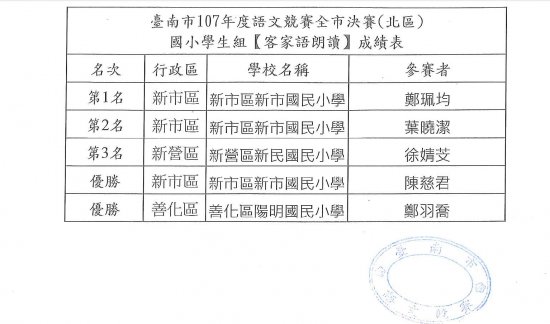 恭喜本校四年甲班 鄭羽喬同學榮獲 107 年度語文競賽-客語朗讀-優勝,謝謝指導老師-徐珮淇老師的用心指導!