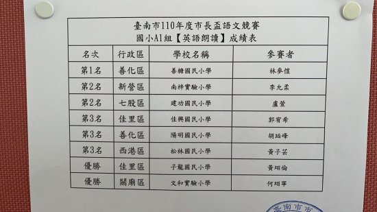 台南市 110 年度市長盃語文競賽學生組 A2 組-英語朗讀