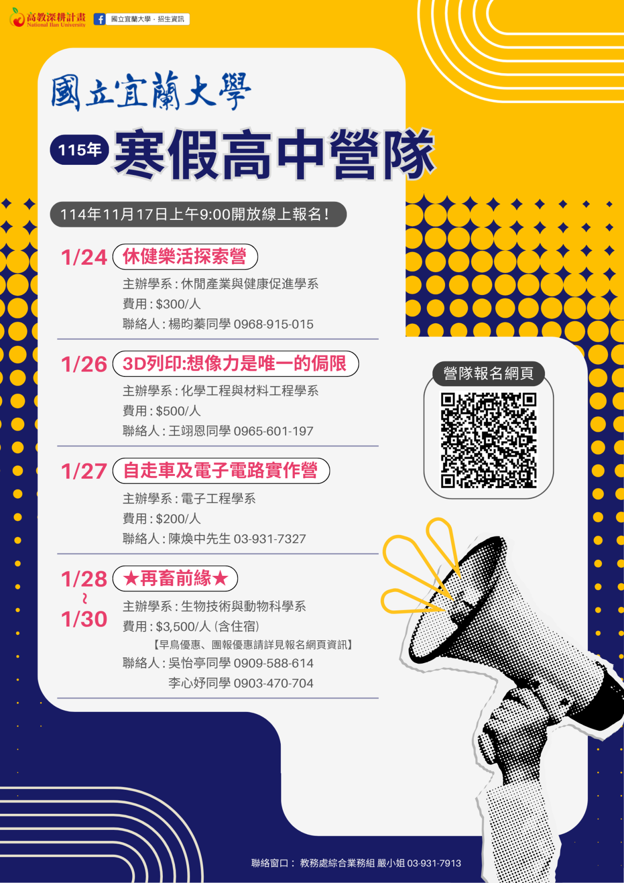 高中營隊-花蓮女子高級中學「115年度全國公私立高級中等學校原住民族文化研習營」活動訊息