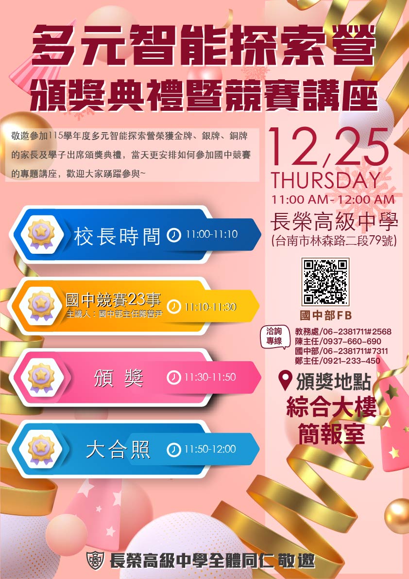 會: 09:00-10:00 簡報室。(八)多元智能探索營-頒獎典
