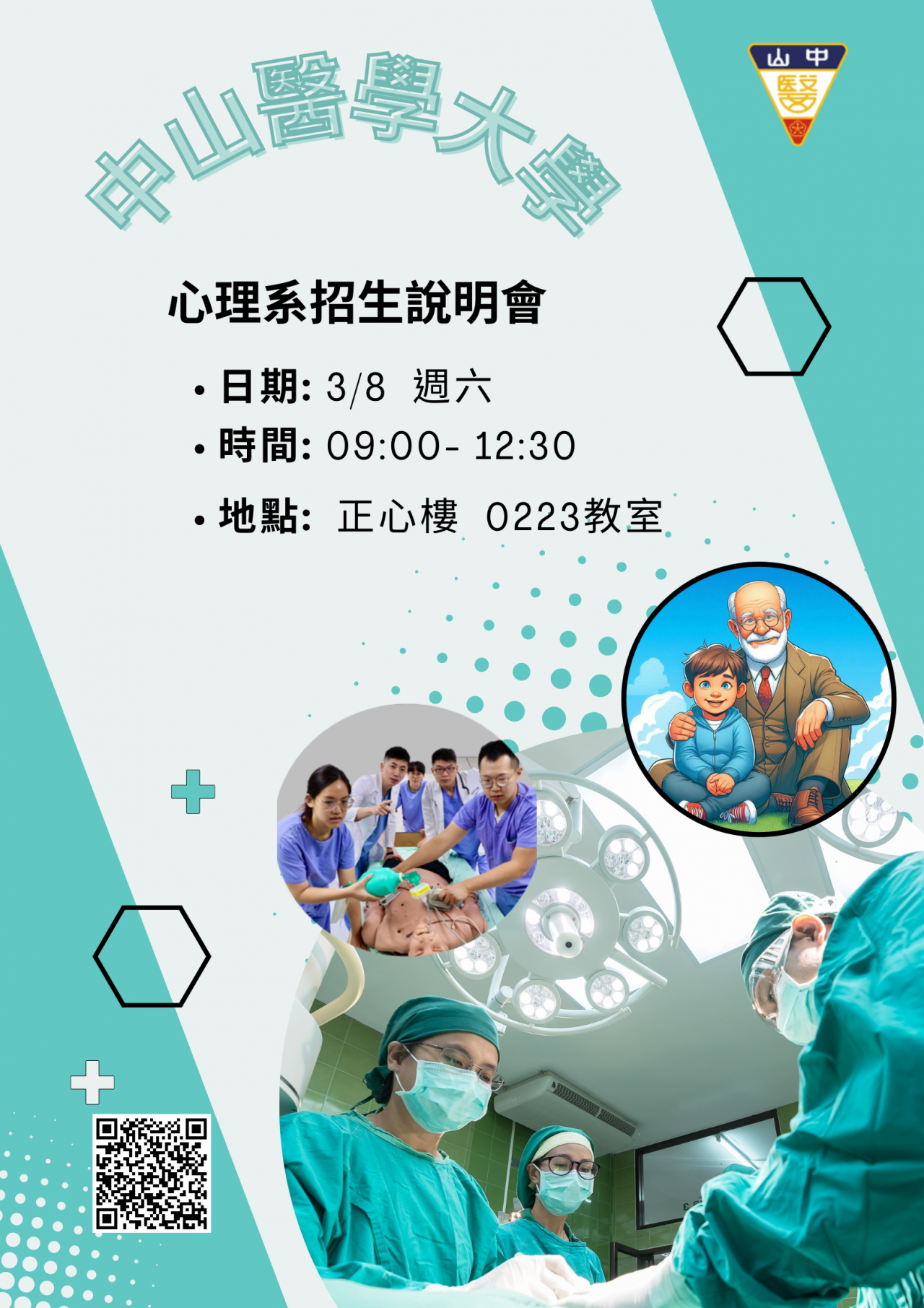 一、活動名稱:中山醫學大學系所招生選材、選系理念和未來規劃方向說明會。