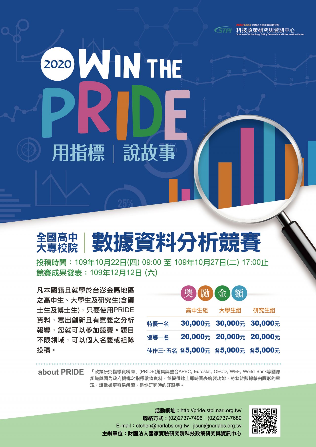 主旨:惠請 貴校協助發布「Win the PRIDE:用指標說故事」競賽活動海報及相關訊息,並鼓勵學生踴躍報全全名參加。