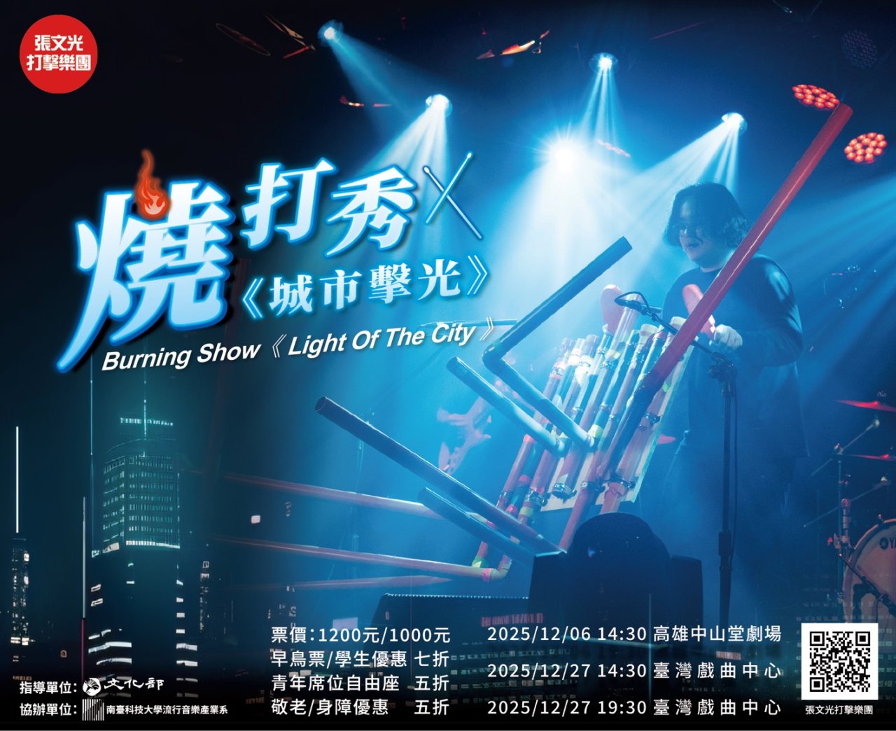 一、旨揭活動為使年輕世代親身體驗打擊樂的震撼力與藝術魅 力,張文光打擊樂團以互動式演出與創意呈現,期能引發 學生對打擊樂的興趣與欣賞能力,並推廣臺灣音樂文化, 提升學子之音樂涵養與肢體律動能力。結合打擊樂、本土 音樂、現代科技與雜技體育等元素,將生活日常聲響融入 演出中,邀請觀眾在繁忙的城市步調中,重新感受「生活 即音樂」的美學,重燃對生活的熱情。