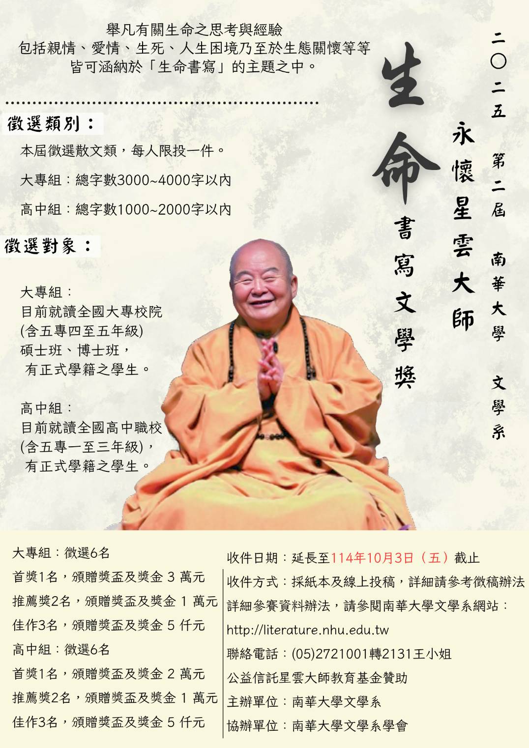 五、詳細活動訊息及相關辦法請至本校文學系網站查詢( https://literature.nhu.edu.tw/ )