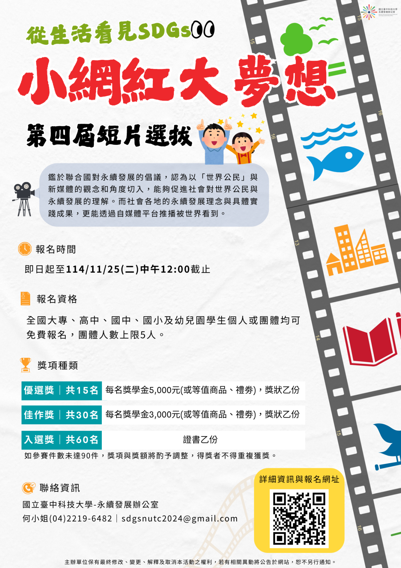 一、本活動旨在推廣聯合國永續發展目標( SDGs ),鼓勵幼兒 園至大專院校學生以短片形式展現對「家庭價值」、「綠 色旅遊」及「地方創生」等議題之關注與創意。