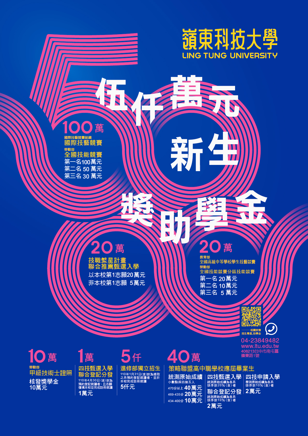 一、 110 學年度特提供新生入學成績優異助學金方案計新台幣伍仟萬元,敬請協助公告師生周知(如附件)。