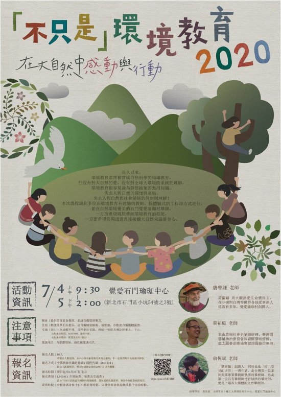 一、長久以來,環境教育常被當成自然科學的知識教育,但沒有對大自然的愛,沒有對全球大環境的系統性理解,環境教育很容易失去人與自然的關懷與連結,失去人對自然與社會關係的洞察與理解!本課程採體驗式工作坊的方式進行,希望跳脫傳統環境教育框架的同時,也能夠透過接觸大自然來滋養身心。