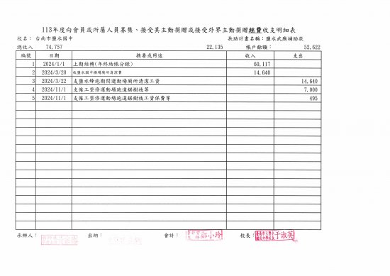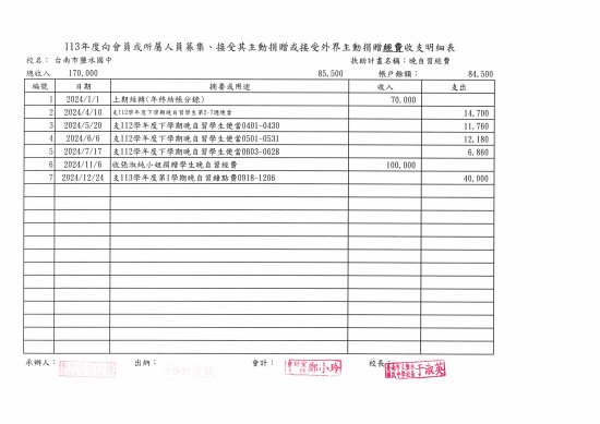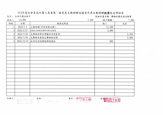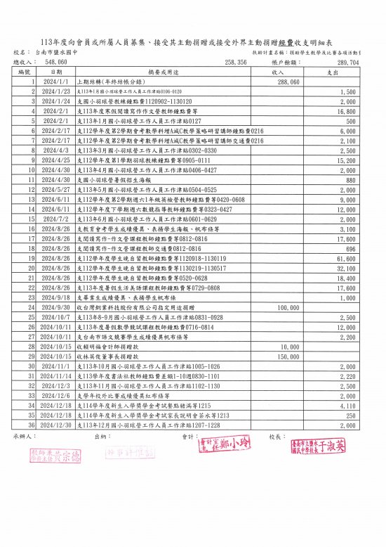 鹽水國中接受外界主動捐贈徵信名錄專區