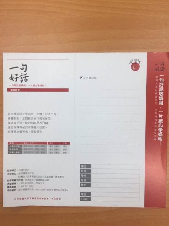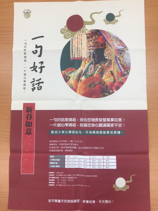安平開臺天后宮標語徵選海報及投稿卡片訊息