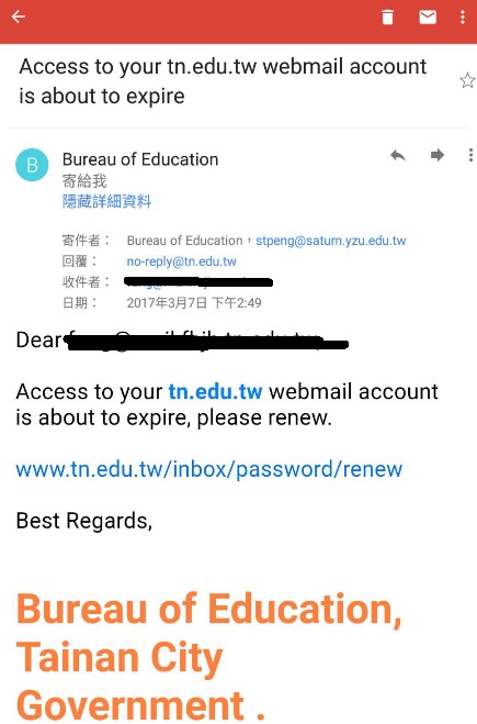 【資訊中心轉知】近日類似釣魚或者詐騙的偽造信件特別多