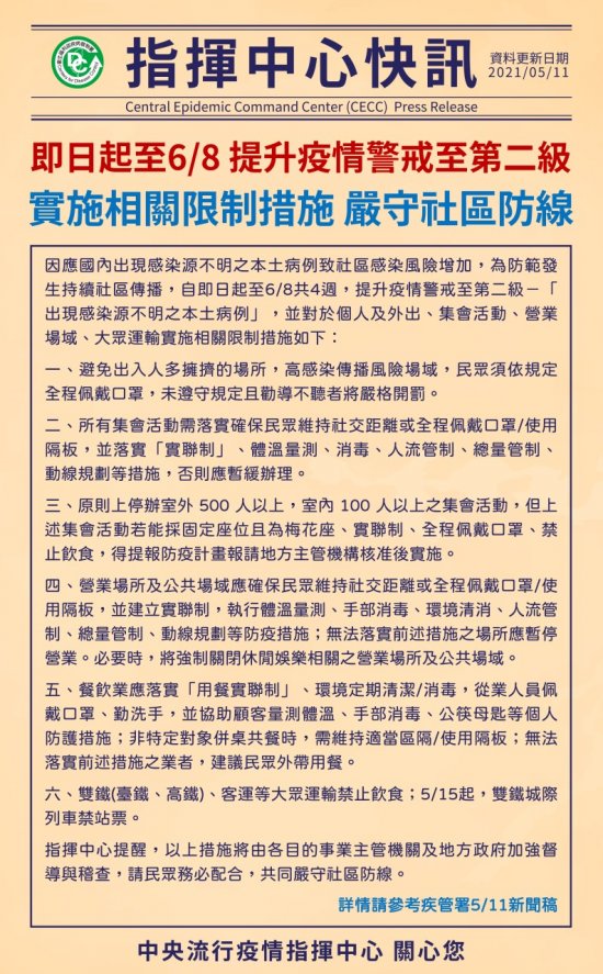 二、因應近期疫情發展,請貴校自 110 年 5 月 14 日起至 6 月 8 日止停課,後續再視疫情發展評估復課。