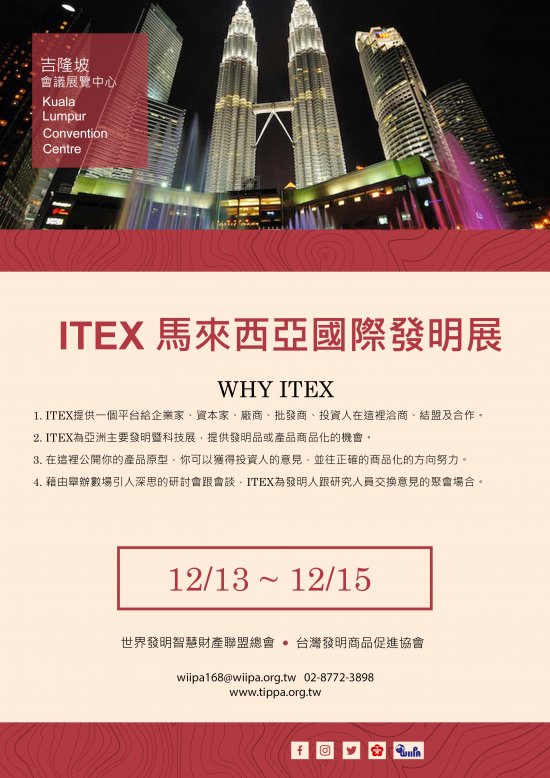 一、 ITEX 聚集來自亞洲與歐洲企業、發明人、研究機構與大學的創新發明品,是一個全球發明愛好者組成的國際盛會。