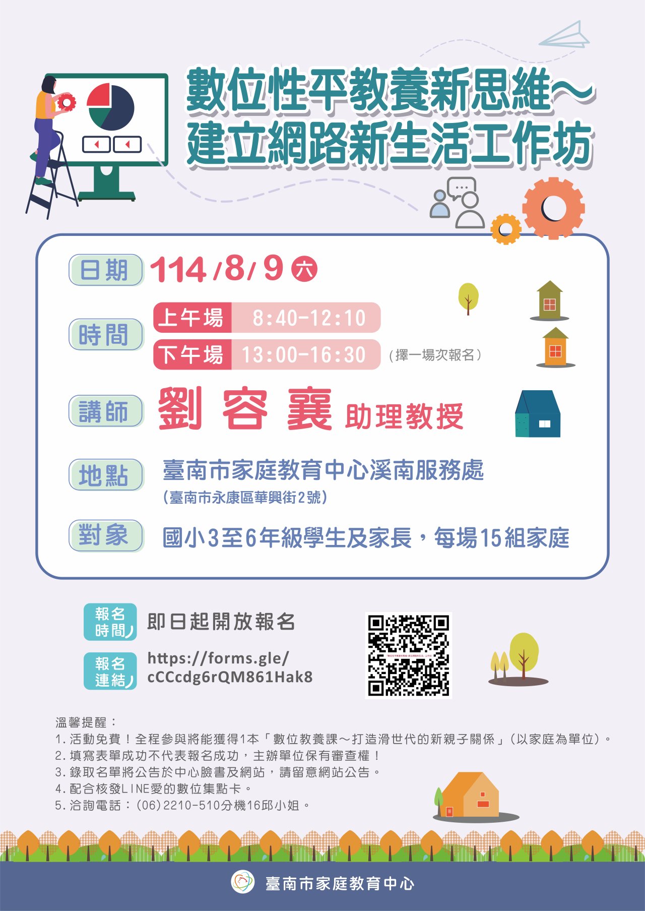(二)地點:臺南市家庭教育中心溪南服務處 (永康區華興街 2 號)。