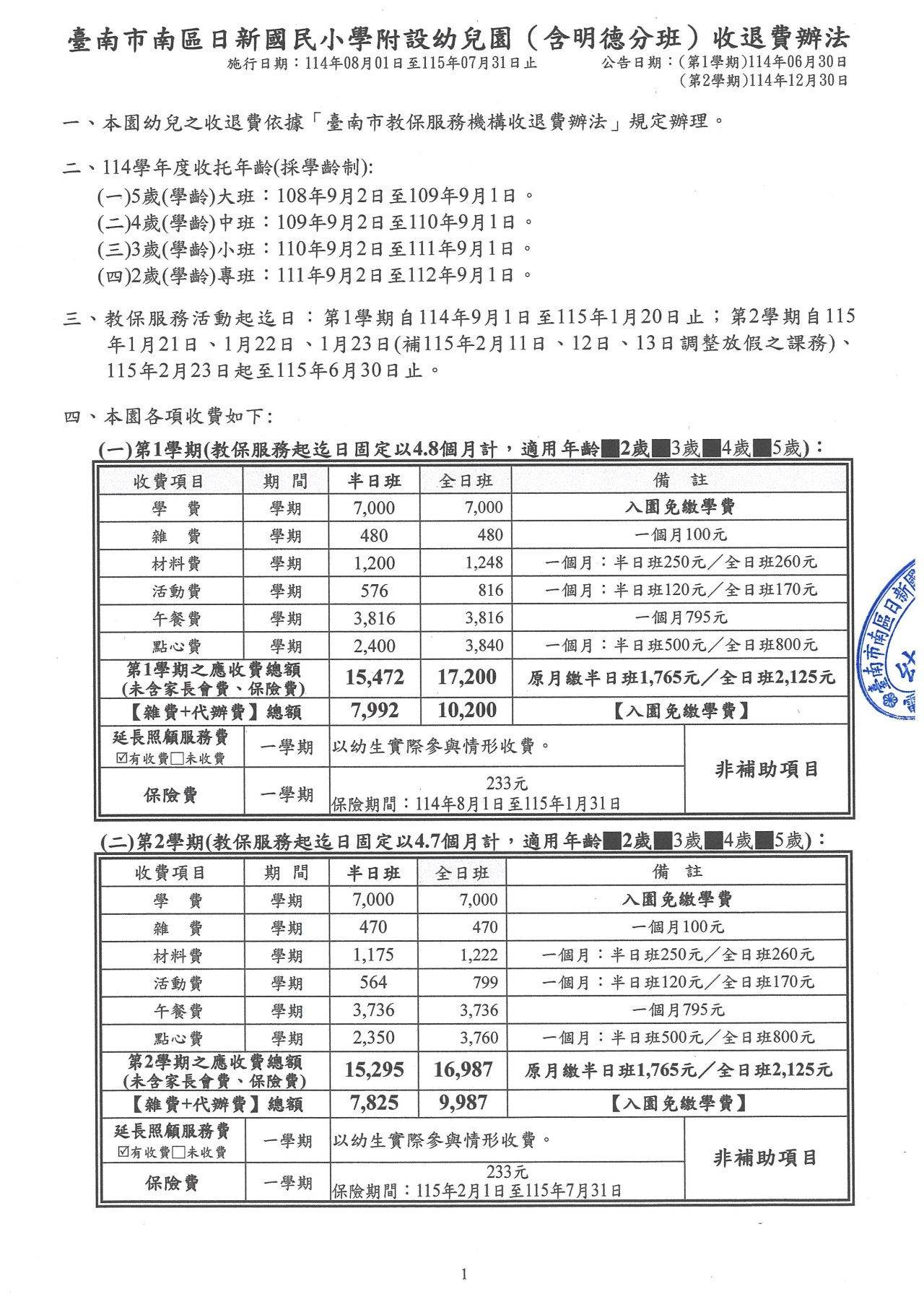 一、依據「臺南市教保服務機構收退費辦法」辦理。